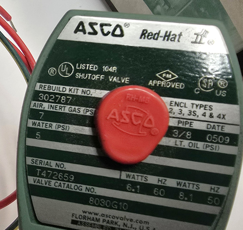 ASCO 8030G10 120VAC 3/8" NPT 2W NC Red Hat Solenoid Valve - New