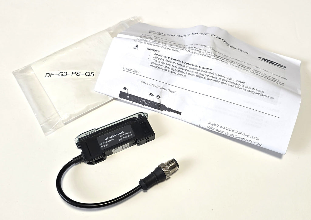 Banner DF-G3-PS-Q5 Dual Display Fiber Amplifier 10-30VDC PNP M12 6" Cable - New