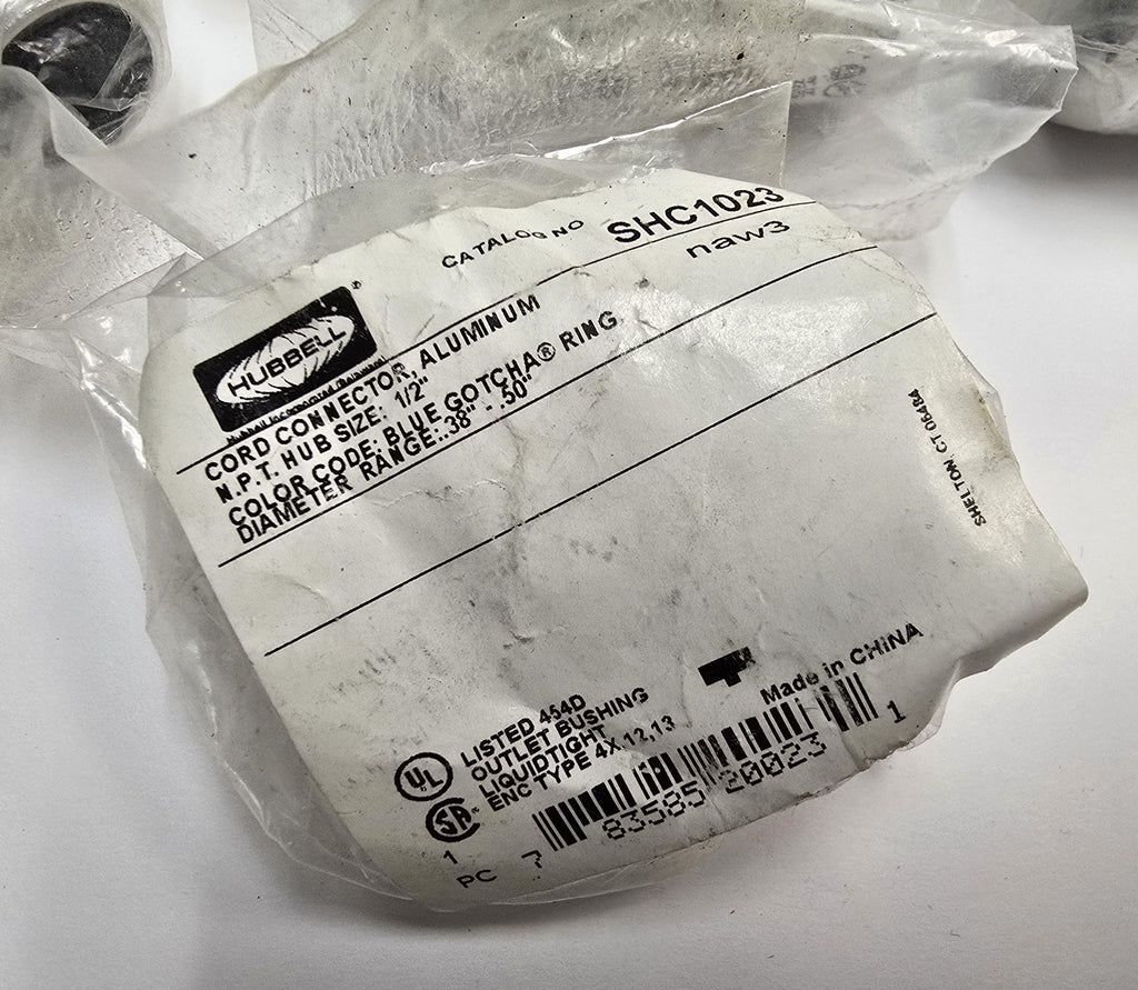 Hubbell SHC1023 6-PACK Range .38" to .50" Aluminum Cord Grip Connector 1/2" NPT