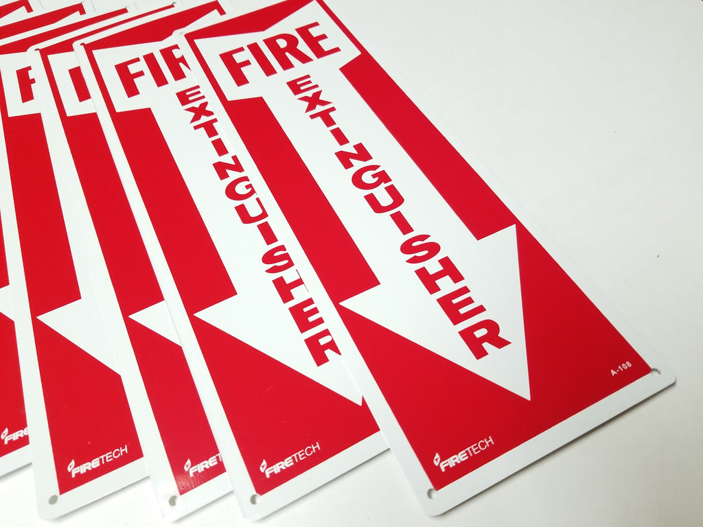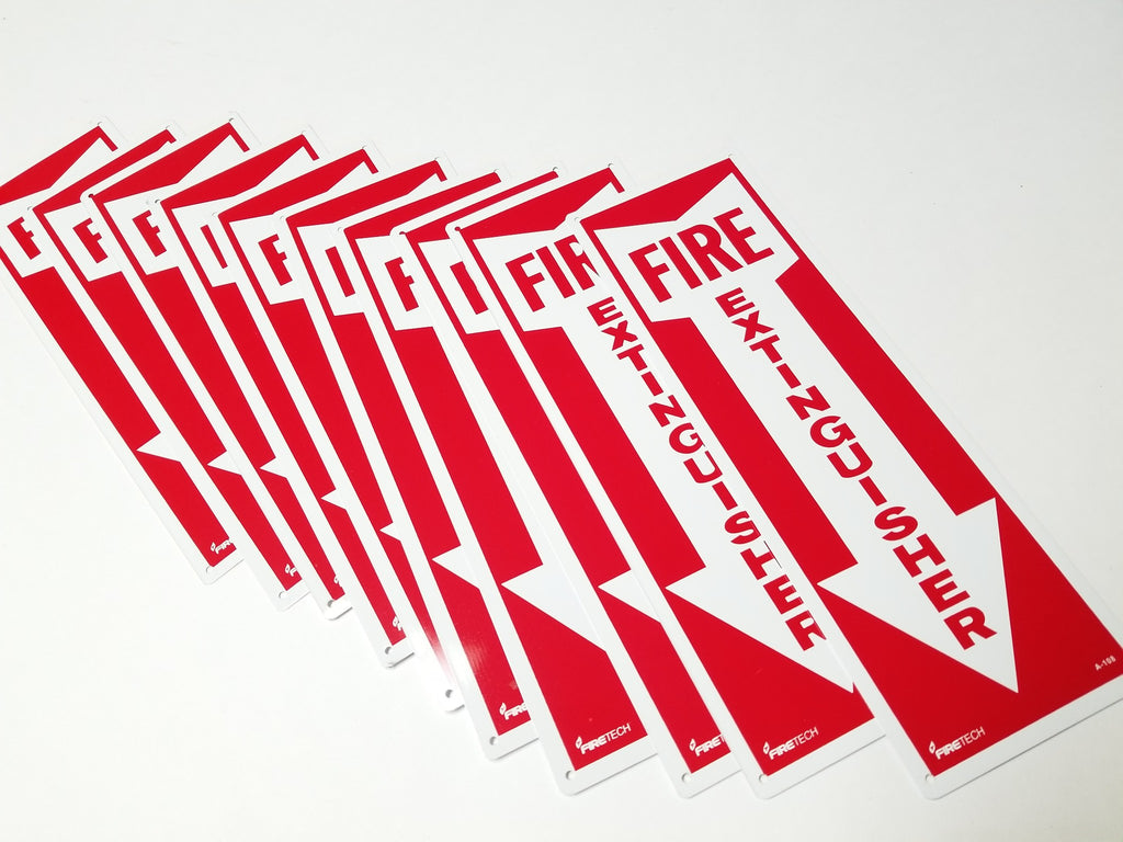 Lot of 10 FIRETECH Aluminum 12" x 4" Aluminum Arrow Fire Extinguisher Signs