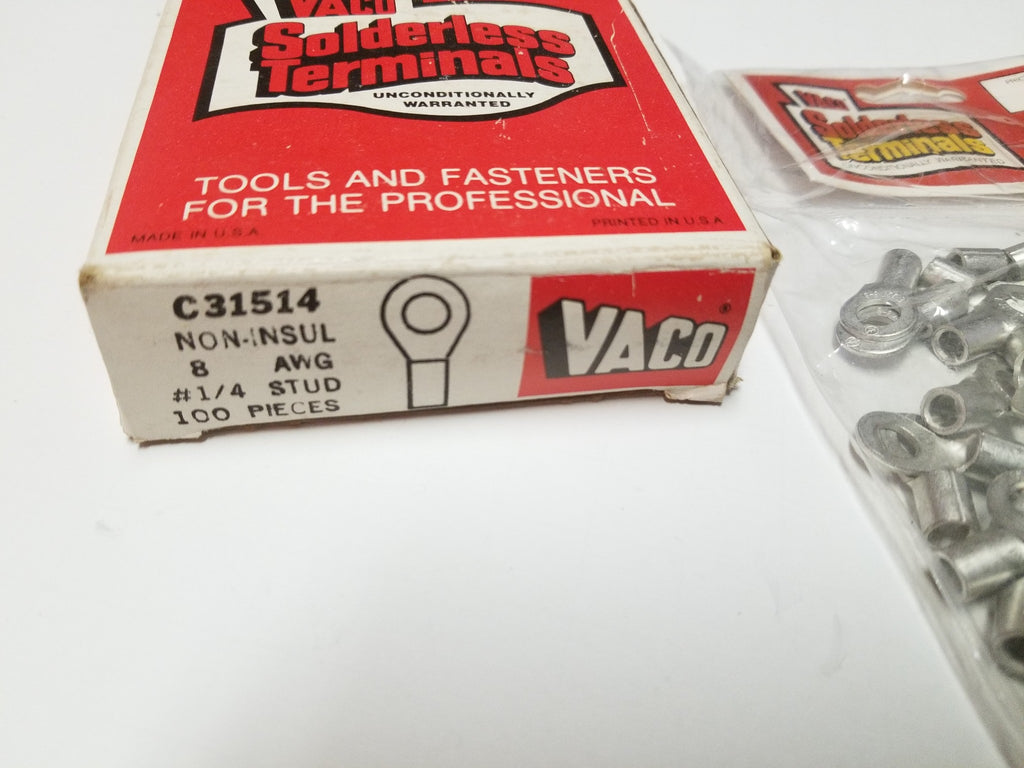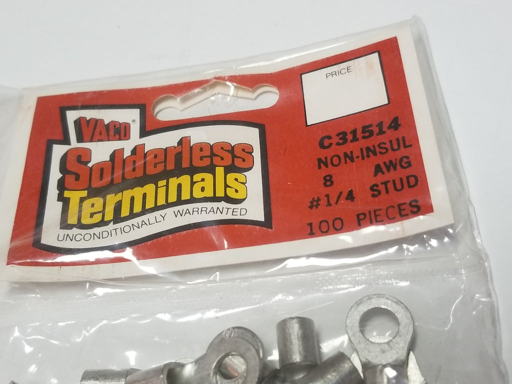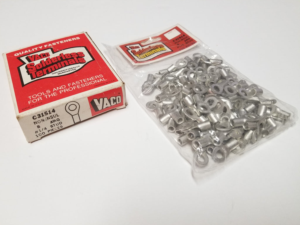 VACO C31514 Non-Insulated 8 AWG #1/4 Stud Ring Lug Terminals Box/100